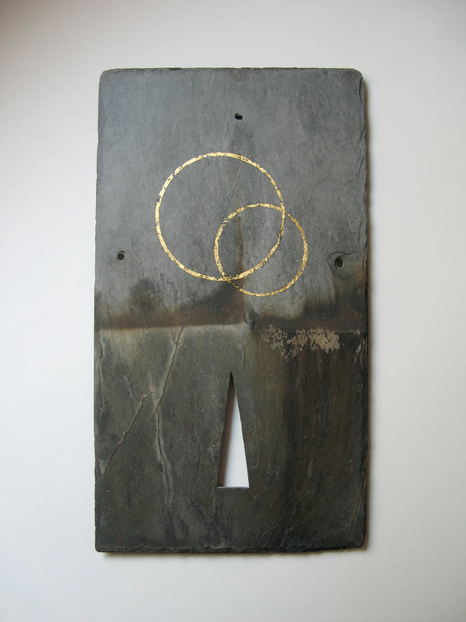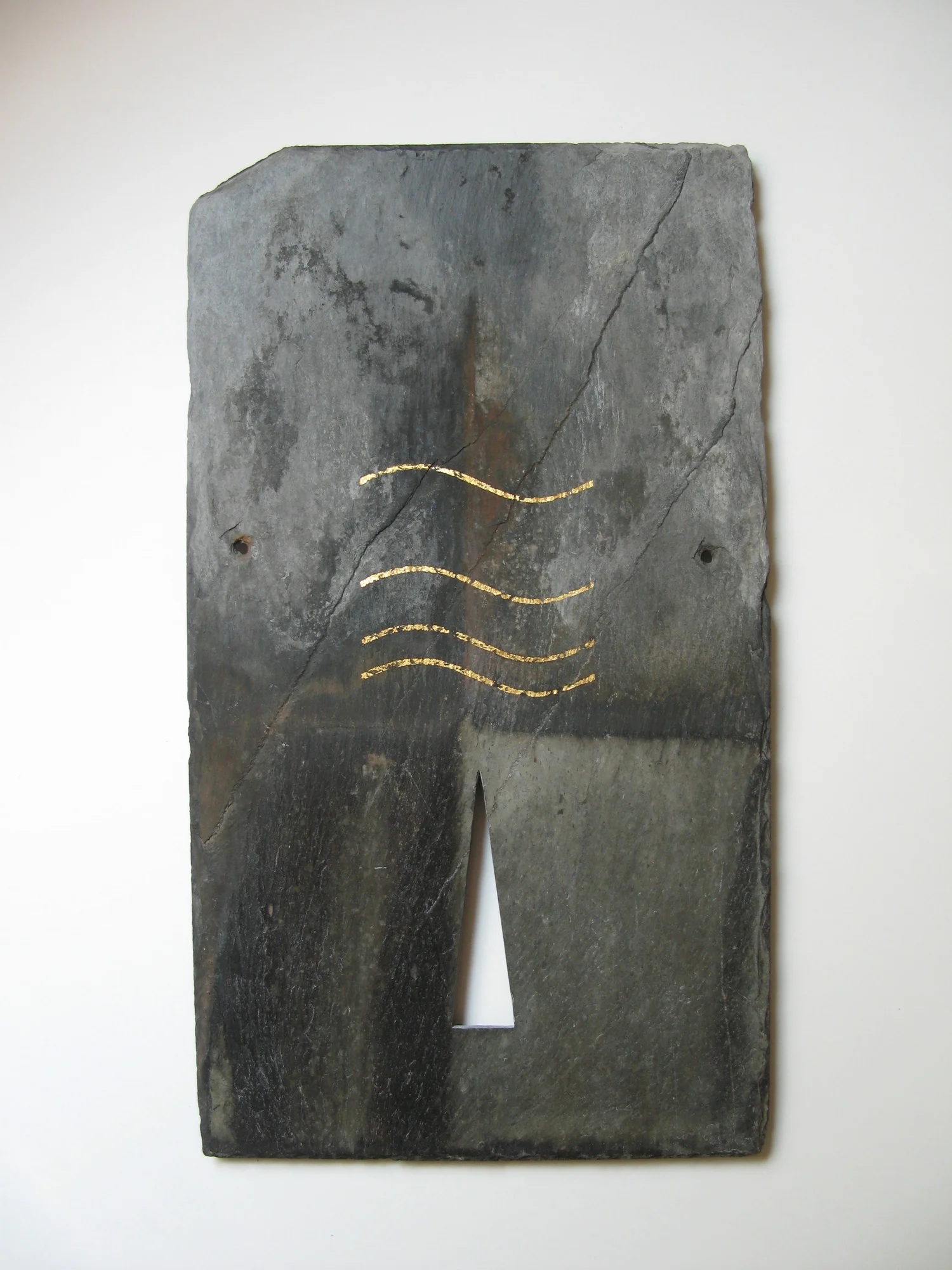 Rising, slate tile and gold leaf, 18 x 10 inches, 2010.
